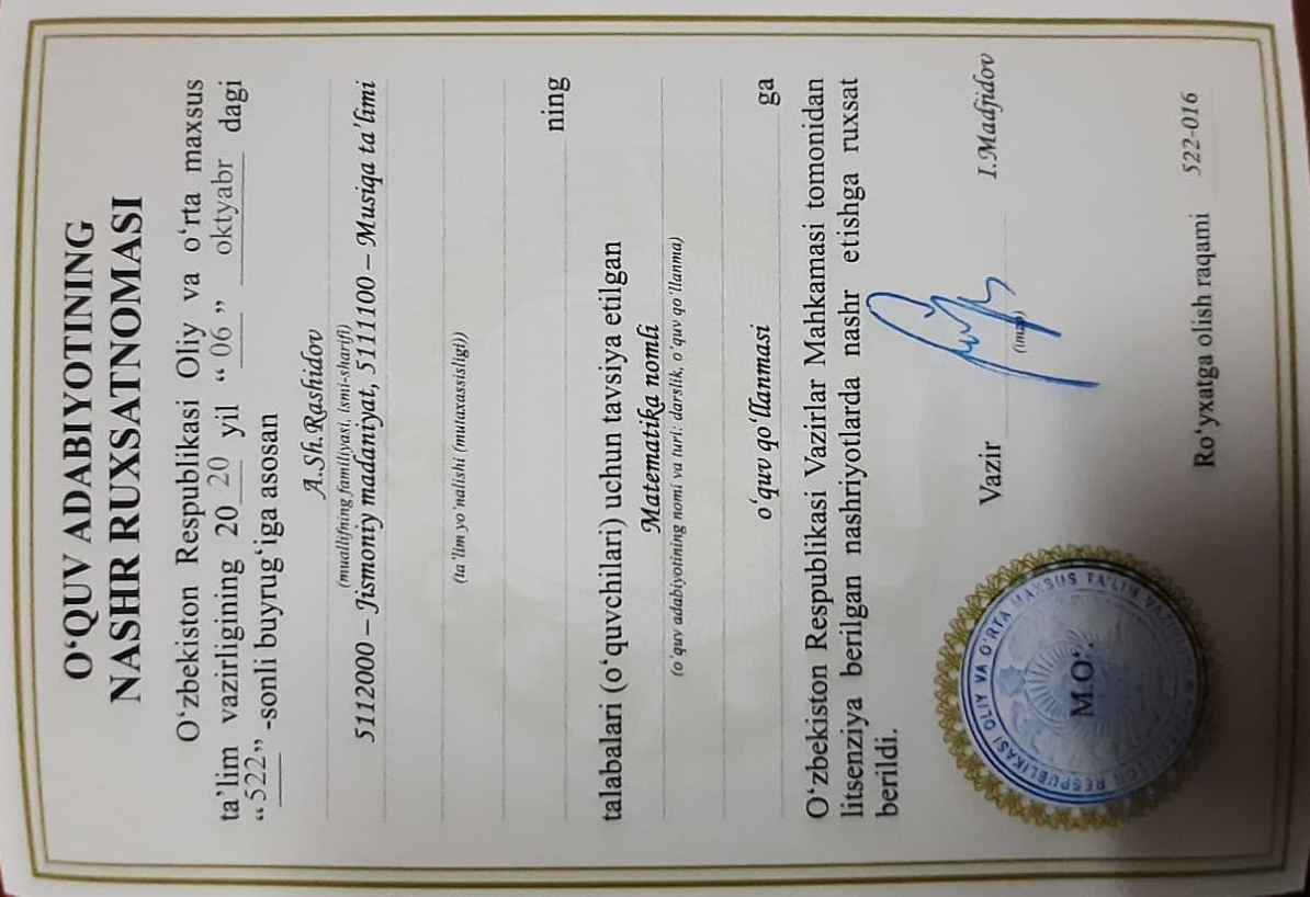 5112000 -Jismoniy madaniyat, 5111100- Musiqa ta`limi
